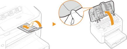 보조 트레이를 닫은 후, 윗면 커버를 여십시오.