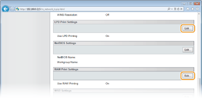[LPD Print Settings] 또는 [RAW Print Settings]에서 [Edit]을 클릭합니다.