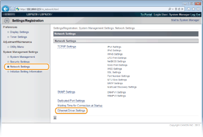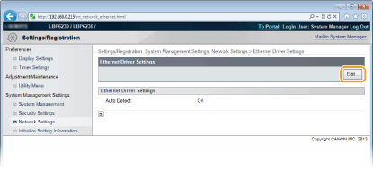 이더넷이란 LAN 데이터 통신을 위한 기준입니다. 고객은 통신 모드(반이중/전이중) 및 이더넷 유형(10BASE-T/100BASE-TX)을 설정할 수 있습니다. 공장 기본 설정과 통신모드, 이더넷 유형은 자동으로 탐지됩니다. 일반적으로 이더넷 설정은 있는 그대로 사용할 수 있습니다. 필요한 경우 다음 절차에 따라 수동으로 설정 내용을 세부적으로 정할 수 있습니다.
