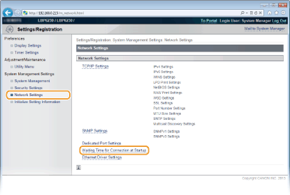 [Waiting Time for Connection at Startup]을 클릭합니다.