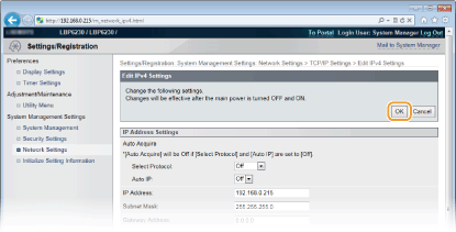 [TCP/IP Settings]을 클릭합니다.
