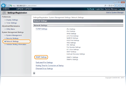 SNMPv3을 사용하면 견고한 보안 기능으로 보호되는 네트워크 장치 관리를 구현할 수 있습니다. Remote UI를 사용하여 설정을 지정합니다. 시작하기 전에 SSL을 활성화해야 합니다(