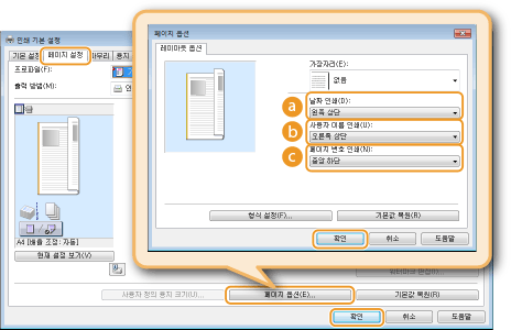 날짜 및 페이지 번호의 인쇄 형식 변경
