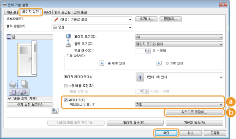 워터마크 작성 또는 편집 화면을 표시합니다.