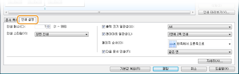 복사 매수와 같은 인쇄 설정을 지정하려면 [인쇄 설정] 탭을 클릭합니다. 여기에서 지정한 설정은 전체 인쇄 작업에 적용됩니다.