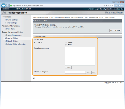 통신을 제한하려면 이 확인란을 선택합니다. 제한 없이 통신하려면 이 확인란 선택을 해제합니다. [Default Policy]