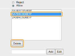 삭제할 MAC 주소를 선택한 다음 [Delete]를 클릭합니다.