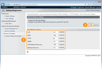 [Port Number Settings]에서 [Edit]을 클릭합니다.