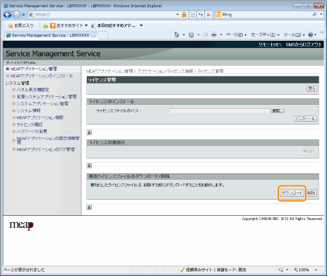 ライセンスのダウンロードについて無効化されているライセンスファイルのみ、ダウンロードを行うことができます。