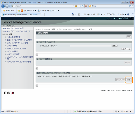 [ライセンス管理]をクリックします。