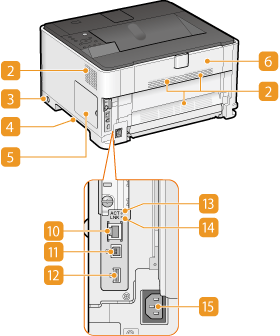 连接配合 MEAP 应用程序(仅限 LBP8780x)使用的 USB 设备。导出或导入本机设置(导入/导出)时,连接 USB 存储设备。