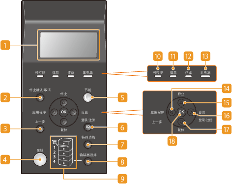 上面所示操作面板是 LBP8780x,可用按键和功能因机型而异。