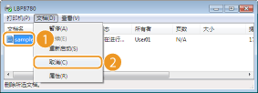 显示 <正在取消作业...> 信息,取消所选打印作业。