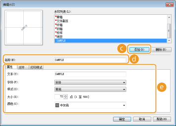 选中 [水印] 复选框,在 [水印名称] 下拉列表中显示水印列表。从列表中选择水印。