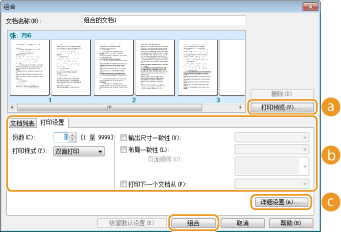 通过使用 Canon PageComposer,可将多个文档合并为一个打印作业,并用指定的打印设置打印此作业。例如,此功能可以合并使用不同应用程序制作的文档并以相同的纸张尺寸打印所有页面。