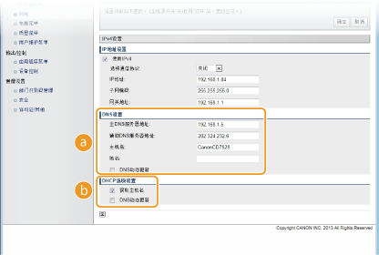 [获取主机名]选中复选框将启用选项 12,从 DHCP 服务器获取主机名。不获取主机名时,则清除复选框。也可从操作面板指定是否获取主机名( IPv4设置)。