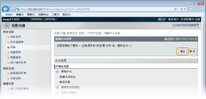 [主DNS服务器地址] 输入 DNS 服务器的 IP 地址。不能输入以“ff”开头的地址(或多路传送地址)、“0000::0000”(全部是零)的地址或者以“0:0:0:0:0:ffff”或“0:0:0:0:0:0.”开头的地址。