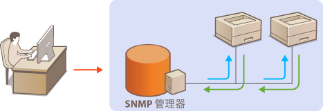 SNMP 管理软件安装在网络上的计算机中时,可以从计算机远程配置、监视和控制本机。有关更多信息,请参阅管理软件的使用说明书。