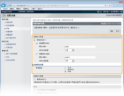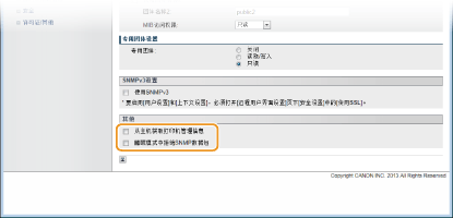 禁用 SNMPv1如果禁用 SNMPv1,本机的某些功能将无法使用,如通过打印机驱动程序获取本机信息。