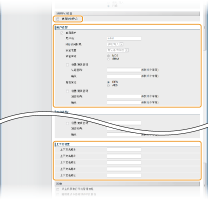 如果同时启用 SNMP 的两个版本,建议将 SNMPv1 中的 MIB 访问权限设置为 [只读]。可在 SNMPv1 和 SNMPv3 中(以及对 SNMPv3 中的各个用户)分别设置 MIB 访问权限。选择 SNMPv1 中的 [读取/写入](完全访问权限)会使 SNMPv3 特有的可靠安全功能失效,因为这样可通过 SNMPv1 控制本机的大部分设置。