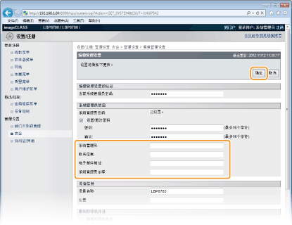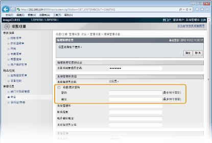 从远程用户界面更改本机中配置的设置需要管理权限。请按照如下所示的步骤更改系统管理员密码。系统管理员密码设置信息对本机的安全至关重要,所以要确定只有管理员知道系统管理员密码。