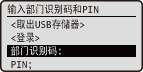 如果部门识别码设置 PIN,最多输入七位数字。