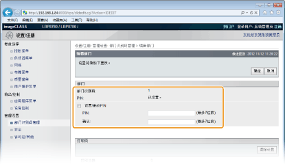 [部门识别码管理PIN确认设置] 中的 [编辑]