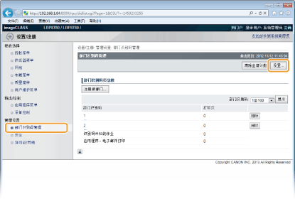 选中 [使用部门 ID 管理] 复选框并单击其右侧的 [设置]。