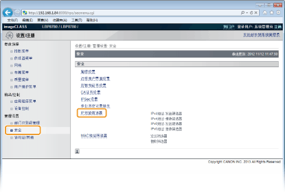 选中复选框限制通信,清除复选框则禁用限制。还可从操作面板指定是否限制通信(地址筛选器)。