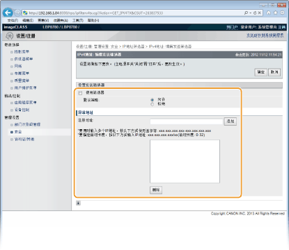 在 [注册地址] 文本框中输入 IP 地址(或 IP 地址范围),并单击 [添加]。