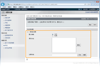 选中复选框限制通信,清除复选框则禁用限制。还可从操作面板指定是否限制通信(地址筛选器)。