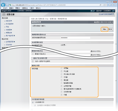 可选中复选框,即使在操作面板上按下按键时也锁定相应按键。清除复选框可解除锁定按键。还可从操作面板锁定设置按键(