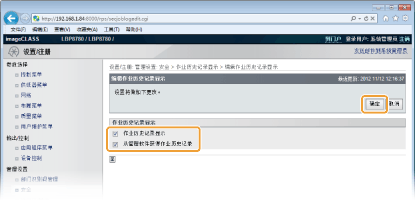 如果选中复选框,可使用 imageWARE Enterprise Management Console 等设备管理软件获取打印作业历史记录。清除复选框则禁用管理软件获取打印作业历史记录。选中 [作业历史记录显示] 复选框时自动启用此功能。