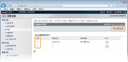 从密钥和证书列表中选择密钥,并单击 [默认密钥设置]。