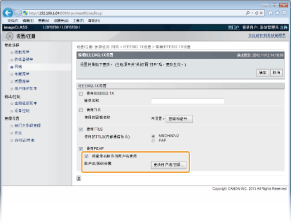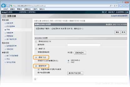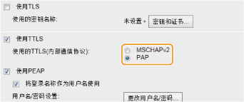 选中 [使用TTLS] 或 [使用PEAP] 复选框。