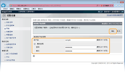 要设置或更改密码,请选中复选框并在 [密码] 文本框中最多输入 24 个字母数字字符的密码。为了确认,在 [确认] 文本框中输入相同的密码。