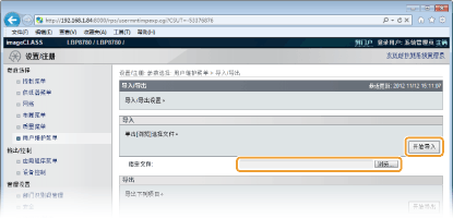从操作面板导入/导出可通过 USB 存储设备或可选 SD 卡(仅限 LBP8780x)从操作面板的设置菜单保存/加载设置数据。导入/导出