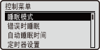 关于睡眠模式和如果出错本机应如何应对的设置列有简短说明。默认设置标示剑号(