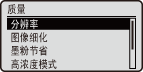 执行清晰度比 <分辨率> 设置更高的打印,但质地稳定性稍差。这种打印模式适合打印边缘清晰的数据,如文字、细线和 CAD 数据。