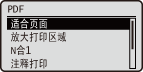 USB 直接打印和直接打印可用的 PDF 文件的所有设置都列有简短说明,默认设置标示剑号(