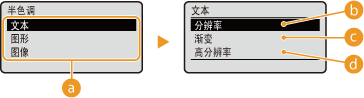 选择更改设置的图像数据类型,文字选择 <文本>,线条和图形选择 <图形模式>,或者照片等图像选择 <图像>。