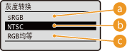 彩色数据转换为黑白数据可生成相当于电视画面(NTSC)的外观。