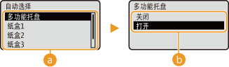 选择 <打开>,则上一个屏幕选择的供纸器启用供纸器自动选择(