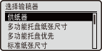 (输稿器选择)时,显示选择输稿器菜单,默认设置标示剑号( )。 |