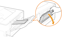 如果透明胶片或信封的打印件卷曲,将它们输出到本机背面的子输出托盘。
