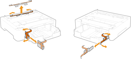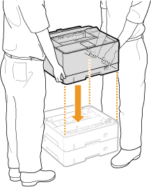 ![]() 如果输稿器与本机同时安装,则返回本机的安装步骤(取出包装材料)并继续进行安装工作。