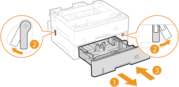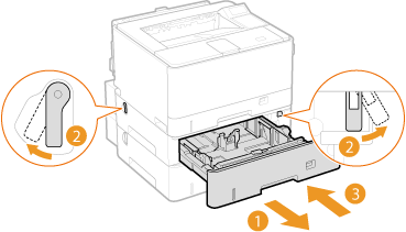 操作正面的锁定杆时,拉出纸盒,然后锁定输稿器。