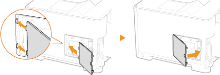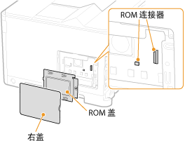 本节介绍如何在本机中安装 Barcode Printing Kit-F1,连接本机右盖板内的 ROM 连接器使用 ROM。在安装 ROM 前,请阅读安装中的注意事项。