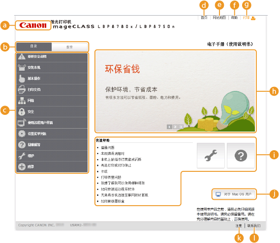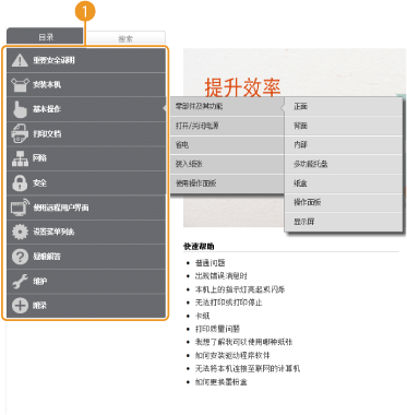 单击可显示如何查看电子手册、如何执行搜索的信息以及其他信息。