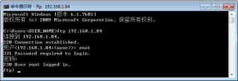显示“230 User <FTP 打印用户名> logged in.”。